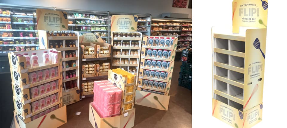 M&S wanted a display to pull together everything for Pancake Day, so shoppers could pick up all their pancake ingredients and toppings from a single point of purchase.