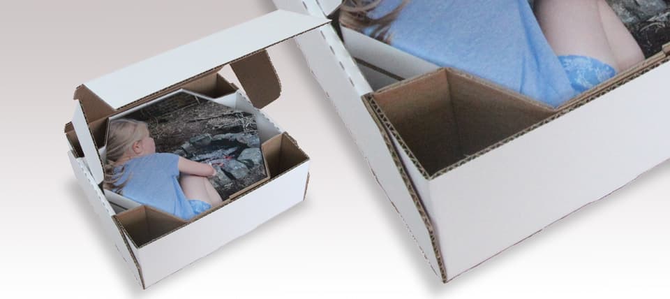 The company needed a box to send hexagonal canvas prints to customers through the post and via courier. They were looking for a basic hinged-lid corrugated box.