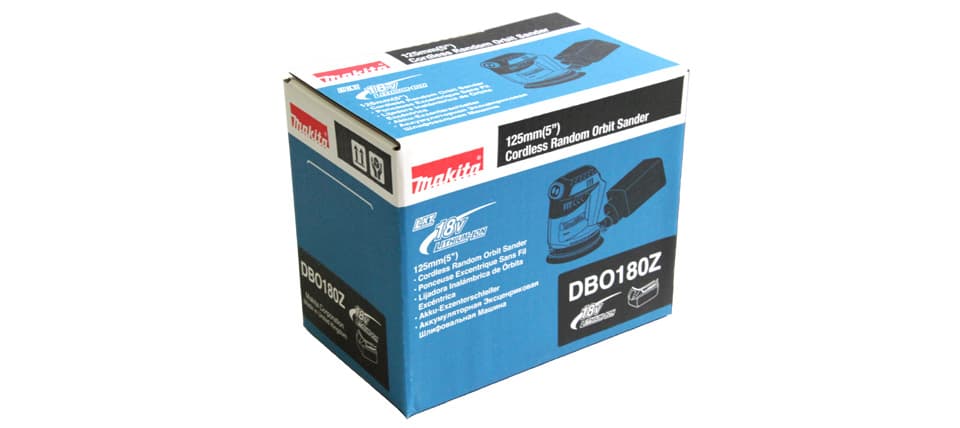 At Makita’s request, we looked first at the packaging for a sander, which included a lot of empty space in the box and a separate corrugated cardboard fitting inside to support the product. This two-piece packaging was expensive to produce and slow to assemble, which also resulted in high labour costs.